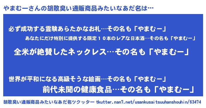 | 意味不明あだ名 | 『とにかく怪しいやまむー』 |