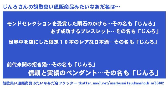| 男性向けラノベタイトル風あだ名 | 『この素晴らしい世界にじんろを!』 |
