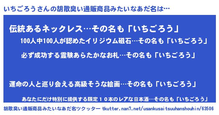 | 男性向けラノベタイトル風あだ名 | 『イチゴロウスレイヤー』 |