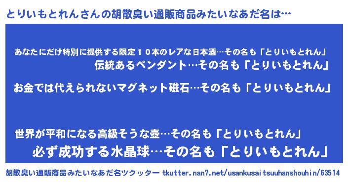 | ヒーロー風カッコイイあだ名 | 『慈愛の使者とりいもとれん』 |