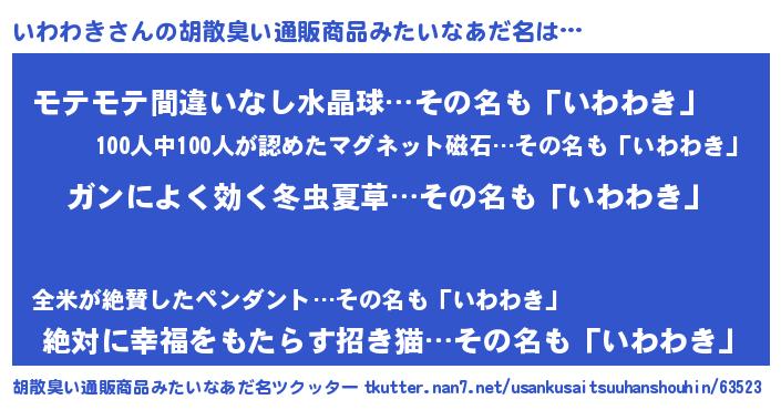 | 意味不明あだ名 | 『自称いわわき』『なめこ科いわわき属』 |