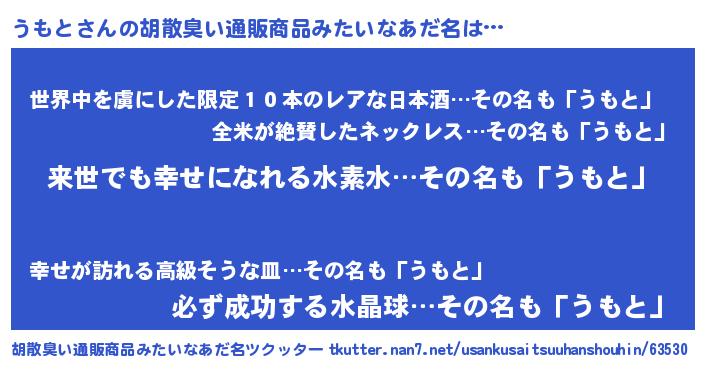 | 男性向けラノベタイトル風あだ名 | 『うもとという概念が存在しない退屈な世界 』 |