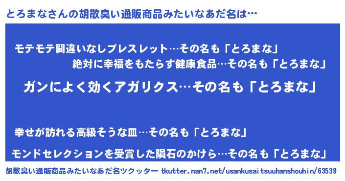 | 恥ずかしいあだ名 | 『トロマナデラックス』『とろちん』 |