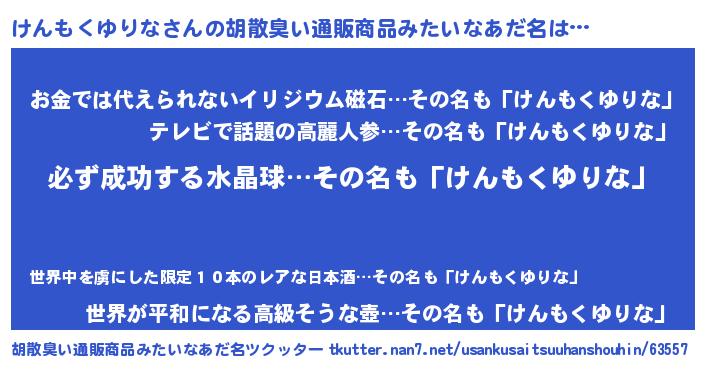 | 恥ずかしいあだ名 | 『プリティーけんもくゆりな』『けんちん』 |