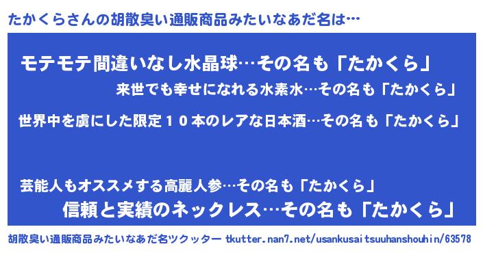 | 恥ずかしいあだ名 | 『プリティーたかくら』『タカリンリン』 |