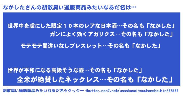 | 男性向けラノベタイトル風あだ名 | 『転生したらなかしただった件』 |