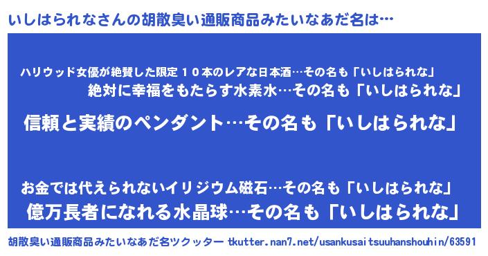 | 意味不明あだ名 | 『とにかく怪しいいしはられな』 |