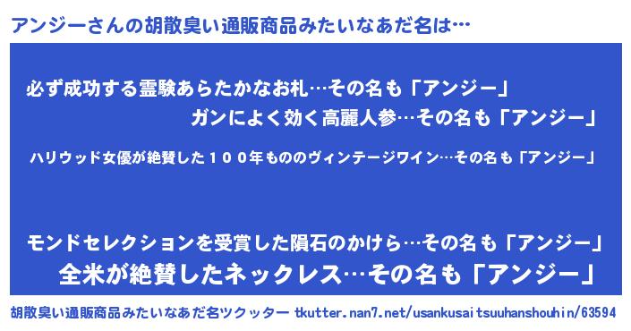 | 意味不明あだ名 | 『めかぶ科アンジー属』『自称アンジー』 |