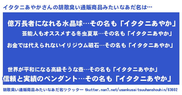 | 欧米人風あだ名 | 『イタタニあやか・ステッグマイヤー』 |