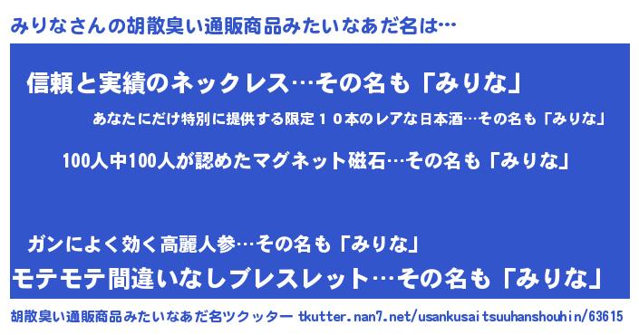 | 欧米人風あだ名 | 『ダニエルみりな』『ウサインみりな』 |