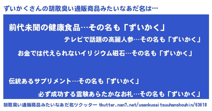| ヘコむあだ名 | 『ずいかく(爆)』『ずいにゅー』 |