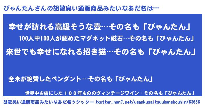 | 意味不明あだ名 | 『永久保存びゃんたん』 |