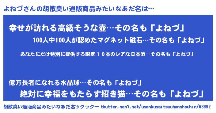 | 意味不明あだ名 | 『住所不定無職よねづ(62歳)』 |
