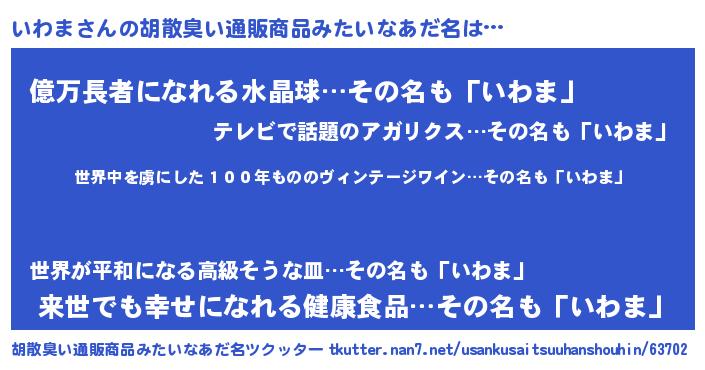 | 自動車の名前っぽいあだ名 | 『イウディ』『イワティマ』 |