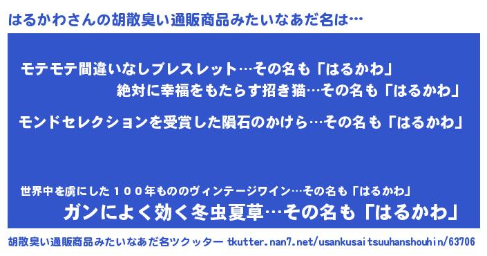 | ヘコむあだ名 | 『はるっふぃ~』『はるかわ(笑)』 |