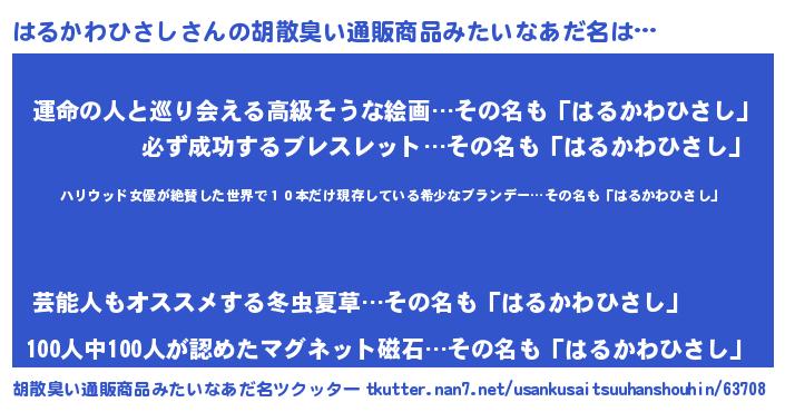 | 意味不明あだ名 | 『住所不定無職はるかわひさし(74歳)』 |