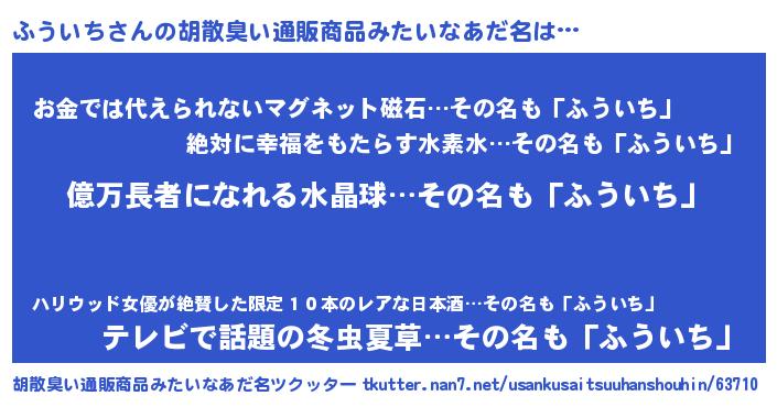 | 男性向けラノベタイトル風あだ名 | 『ふういちに滅ぼされるだけの簡単なお仕事です』 |