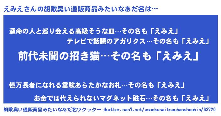 | 意味不明あだ名 | 『永久保存えみえ』『えみえフォーエバー』 |