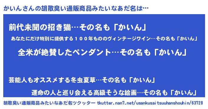 | 意味不明あだ名 | 『とにかく怪しいかいん』 |