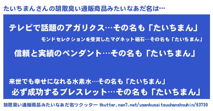 | 意味不明あだ名 | 『とにかく怪しいたいちまん』 |