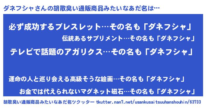 | 意味不明あだ名 | 『自称ダネフシャ』『ペロリンダネフシャ』 |