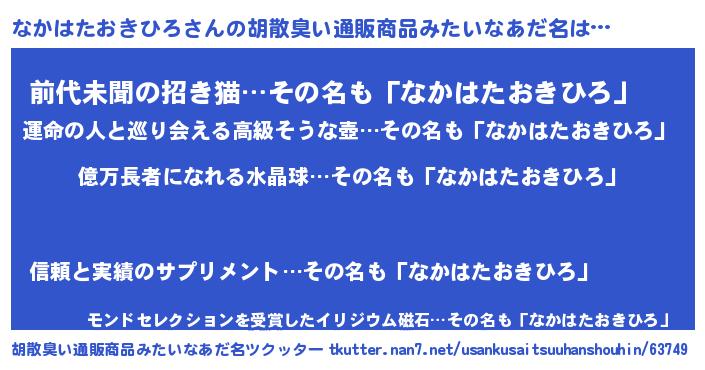 | 伝説のあだ名 | 『封印されし傭兵なかはたおきひろ』 |