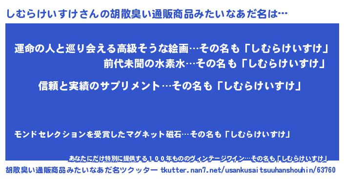 | 料理風あだ名 | 『しむらけいすけの豆乳スープ』 |