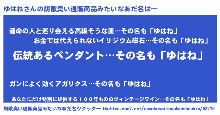 | ヘコむあだ名 | 『ゆはっちょ』『酢こんぶ』 |