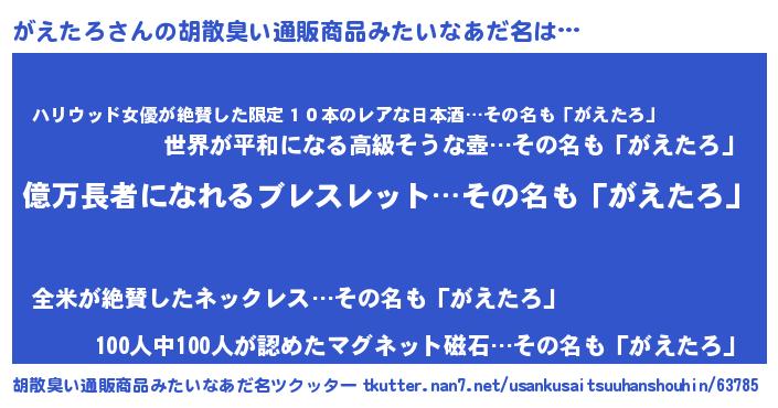 | 欧米人風あだ名 | 『マイケルがえたろ』『ダニエルがえたろ』 |