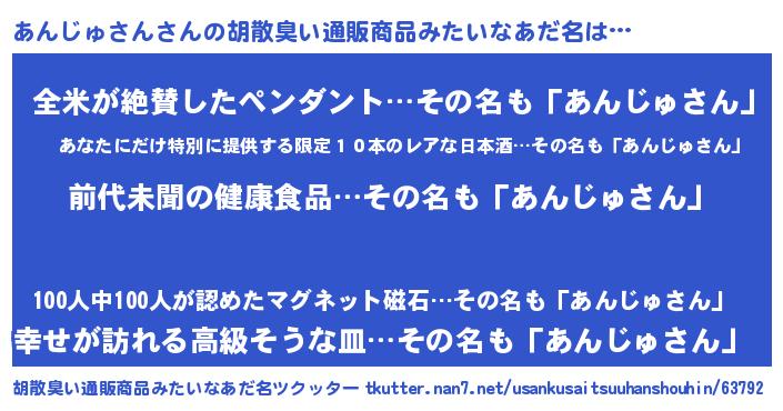 | 意味不明あだ名 | 『永久保存あんじゅさん』 |