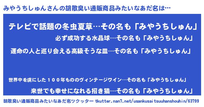| ヘコむあだ名 | 『酢こんぶ』『みやうちしゅん(苦笑)』 |