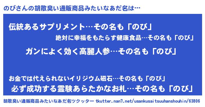 | 男性向けラノベタイトル風あだ名 | 『魔法科高校ののび』『ノビスレイヤー』 |
