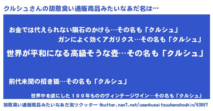 | 意味不明あだ名 | 『クルシュフォーエバー』『自称クルシュ』 |