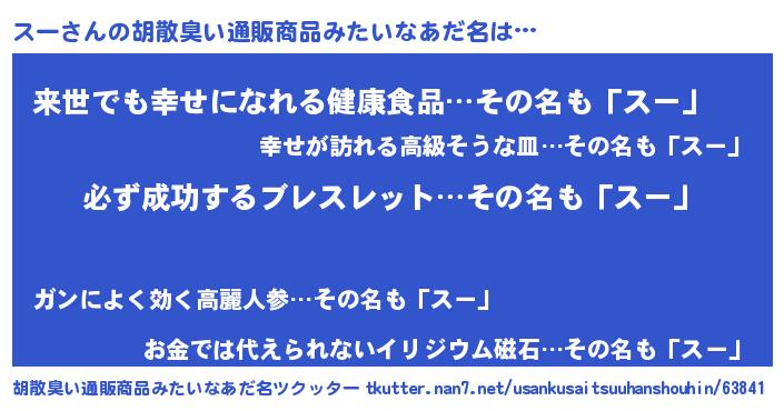 | ヘコむあだ名 | 『スーにー』『スー(爆)』『つくし』 |