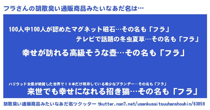 | ヘコむあだ名 | 『牛乳』『フラ(笑)』『フラにゅー』 |