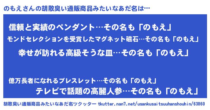 | ヘコむあだ名 | 『つくし』『のもお』『のもにゅー』 |
