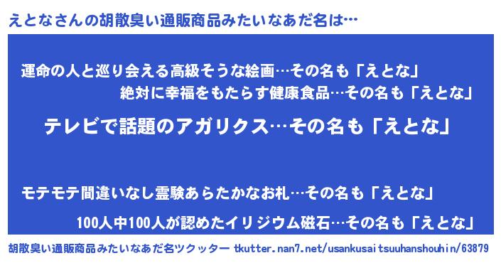 | 意味不明あだ名 | 『自称えとな』『えとなフォーエバー』 |