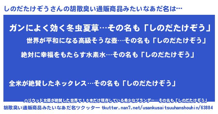 | 意味不明あだ名 | 『永久保存しのだたけぞう』 |