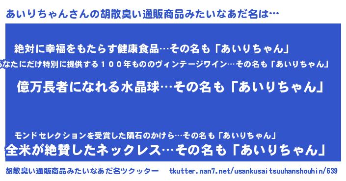 | ヘコむあだ名 | 『あいにゅー』『あいりちゃん(爆)』 |