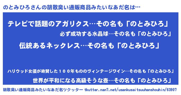 | 男性向けラノベタイトル風あだ名 | 『ダンジョンにのとみひろを求めるのは間違っているだろうか』 |