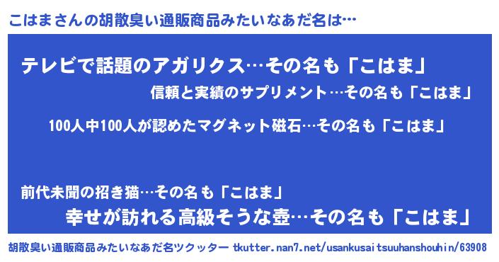 | 男性向けラノベタイトル風あだ名 | 『緋弾のコハマ』『魔法科高校のこはま』 |