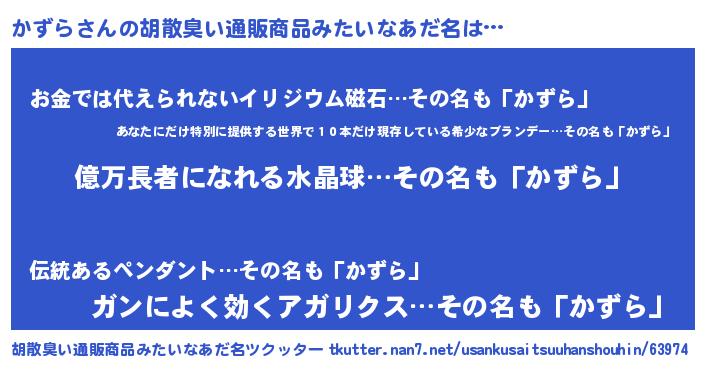 | ヒーロー風カッコイイあだ名 | 『スーパーカズラ』『愛の使者かずら』 |