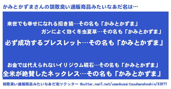 | 肩書あだ名 | 『かみとかずま少尉』『かみとかずま社長』 |