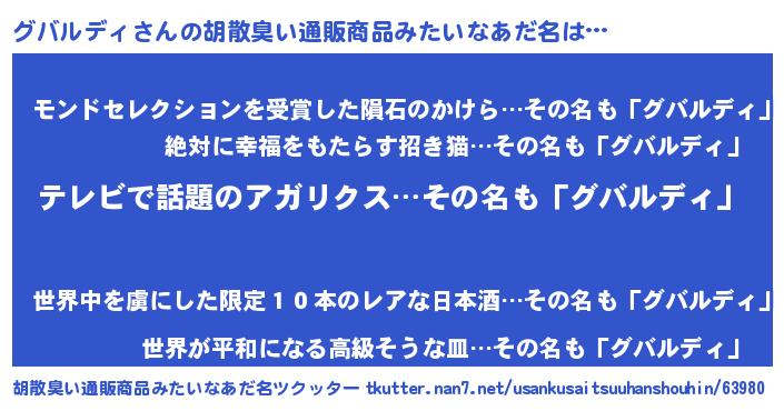 | 欧米人風あだ名 | 『グバルディ・ステッグマイヤー』 |