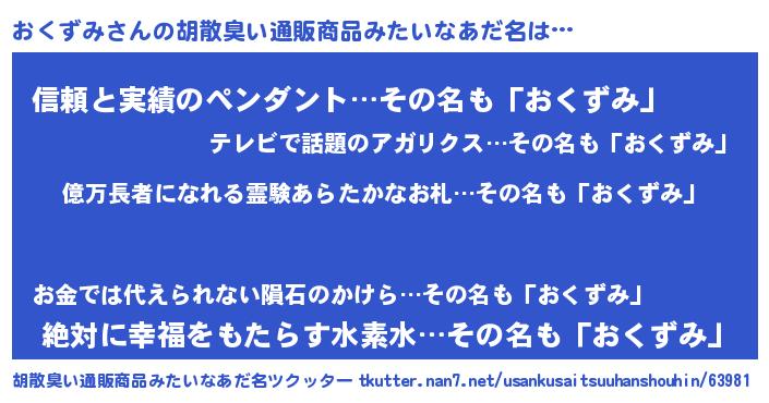 | 欧米人風あだ名 | 『アンジェラ・おくずみ』 |