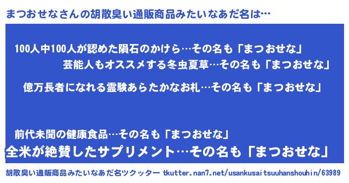 | 伝説のあだ名 | 『封印されしスナイパーまつおせな』 |