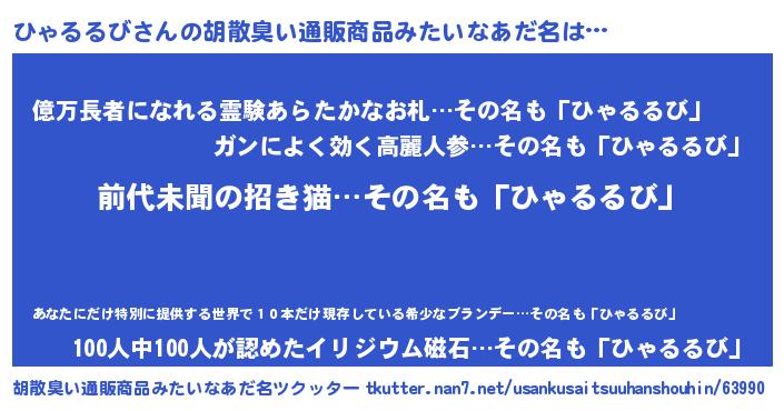 | 意味不明あだ名 | 『永久保存ひゃるるび』『自称ひゃるるび』 |