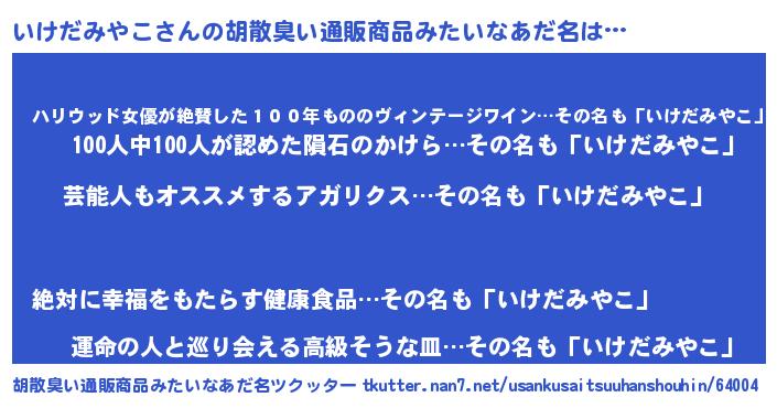 | 意味不明あだ名 | 『自称いけだみやこ』 |