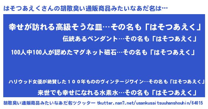 | 料理風あだ名 | 『はそつあえくのトマト煮』 |