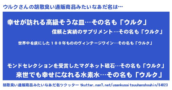 | 意味不明あだ名 | 『住所不定無職ウルク(13歳)』 |